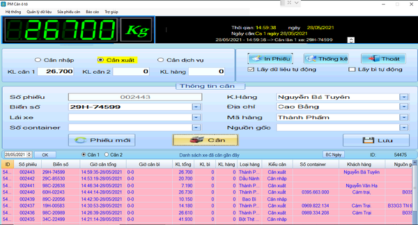 - Chức năng quản lý số lượng xe và hàng hóa xuất, nhập qua cân, in phiếu cân và thống kê hàng hóa tại mọi thời điểm.