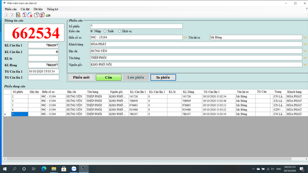 - Chức năng quản lý số lượng xe và hàng hóa xuất, nhập qua cân, in phiếu cân và thống kê hàng hóa tại mọi thời điểm.